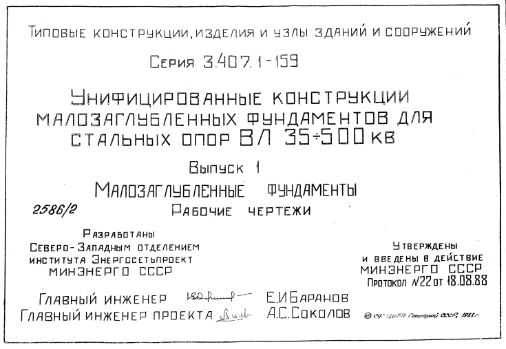 Серия 3.407.1-159. Унифицированные конструкции малозаглубленных фундаментов для стальных опор ВЛ 35-500 кв