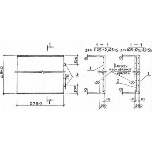П 25  Плиты перекрытия лотков Серия 3.006.1-2/82.